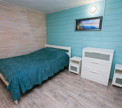 Состоит из 1 спальни и 1 гостиной. Двухспальная и односпальные кровати, раскладной диван, санузел с душем в номере