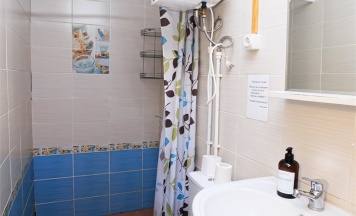 В номере двухспальная и односпальная кровати, санузел с душем