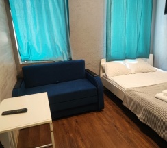 Двухуровневая студия. Диван кровать, двуспальная кровать, односпальная кровать. До 5 человек. Санузел, миникухня.