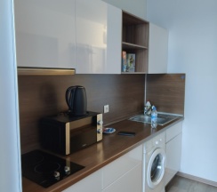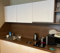 Очень чисто, все новое, большая красивая комната, карта города есть. Близко к центру. Кухня маленькая, но это ок на короткое время. В квартире ну просто все, что душе угодно - питьевая вода, чай, посуда, фен, полотенце, банные халаты.