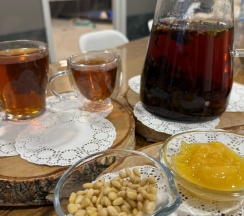 В аква зоне чисто и комфортно. Чай и орешки с медом просто покорили!