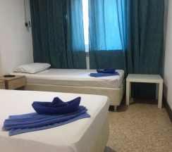 Номер был на троих человек в нем три односпальных кровати,столик,холодильник,кондиционер, тубочки,душ и туалет в номере,полотенца и постельное чистое, свежее, кухня общая с общими кухонными принадлежностями. Персонал отеля очень приветливые,вежливые люди. До моря пешком идти минут 15-20,на машине 5 мин.,центральный пляж грязный,но если пройти к Дому Рыбака(см.2гис),то пляж и море - ОГОНЬ!