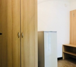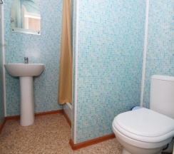 Холодильники находятся в общем пользовании и располагаются в коридоре. Душевые и санузлы, для всех номеров эконом, располагается на первом этаже административного корпуса и разделены на мужскую и женскую половину.