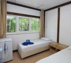 Номера эконом располагаются на втором этаже административного корпуса. Номера укомплектованы кроватями с комфортными матрасами (при необходимости кровати можно объединить или установить раздельно). В числе удобств - прикроватные столики, вентиляторы. Гостям предоставляется постельное белье и полотенца.