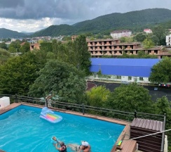 Из минусов. Узкие кровати, в первую ночь упала с неё, пришлось их просто сдвинуть. Матрас на одной кровати был нормальный, из другого пробивались пружины, пришлось застелить одеялами, чтобы поберечь свои бока. Чайник есть, но хотелось бы еще и стаканчики, хорошо что был свой складной, постоянно вожу его с собой, но не все же так делают. Мыльных принадлежностей никаких не было. Возможно у них это не предусмотрено. При заселении в номере был какой -то устойчивый запах грязной тряпки, потом выветрилось. Подозреваю, что на моющих средствах все-таки экономят. На летней веранде, типо «кафе» всю ночь как трактор работает холодильник. И очень очень не удобный выход из калитки. А так, ко всему можно привыкнуть и приспособиться.