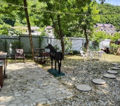 Понравилось: Вид на горы,каждое утро с балкона открывалась нереальная красота....сначало казалось далеко до моря,но это только казалось да и близко к морю нет смысла жить т к такого вида и воздуха не будет...река рядом чистая,те кто живёт у моря даже не в курсе,просто шикарный горный воздух море было чистейшее и спокойное...хозяин Михаил очень добродушный,комната чистая,уютная,WI fi отлично работал на 2 этаже,бассейн каркасный не сильно глубокий,что для ребёнка отлично..территория ухоженная много красивых атрибутов)))очень хорошо отдохнули....Очень душевно и приятно,горы и воздух до сих пор забыть не могу.....