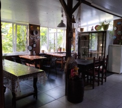 Понравилось: Обстановка доброжелательная, спасибо Михаилу и Наталье! Расположение - для меня отличное, в тихом месте, без толпы людей, направляющихся к морю) и.. Горы! С двух сторон, как будто горы качают младенца на руках) Первые три дня я была сонная и довольная от воздуха) Огромный плюс - деревья на территории, в целом озеленение приятное. Есть большая площадка в тени, где можно расположиться за столиком, пока дети качаются на качелях или прыгают на батуте. За качели - отдельное спасибо Михаилу, сын отказывался идти на море, и даже из дельфинария просился "к дяде Мише на качели")) Мы были в сентябре, по утрам и вечерам уже прохладно, поэтому бассейном не пользовались, не успевал прогреться. Несмотря на это уход за бассейном был ежедневный и очень тщательный. Общая кухня и столовая большие, посуды и другой кухонной утвари более чем достаточно, холодильники для каждой комнаты, чистота.