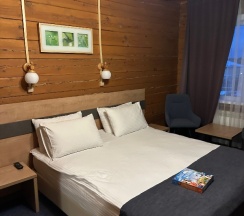 Очень крутая база отдыха. Здесь все продумано до мелочей. Правда до озера минут 20 пешком идти. Уютные, чистые номера. Уборка номера ежедневно. Для досуга предусмотрено все от бассейна, спа и до банного чана. А кухня..... вкуснейшие завтраки на выбор, комплексные обеды, ужин с ожиданием 15-20 :минут с пылу и жару. Пицца и детское меню просто полюбилось детям. Во дворе чистота идеальная, клумбы цветов, качели, тренажёры, фотозона, дорожка для йоги. Приветливый персонал. Процветания вам, прекрасное место.