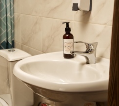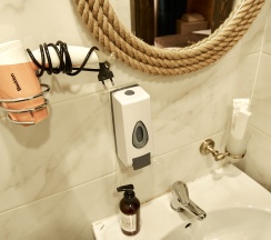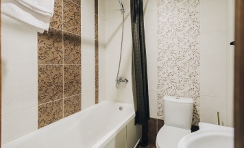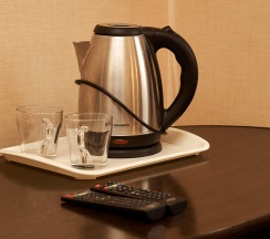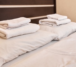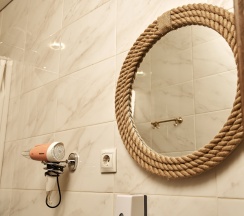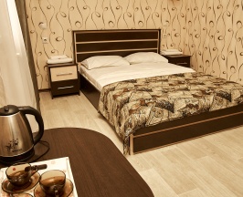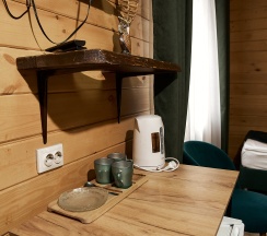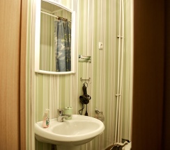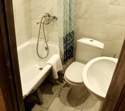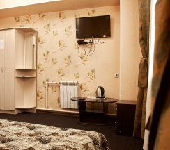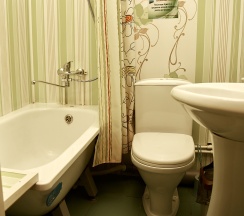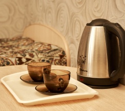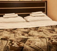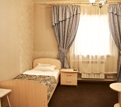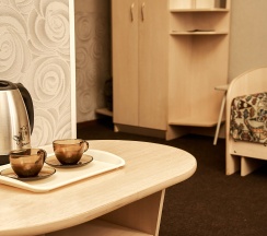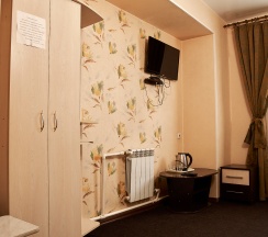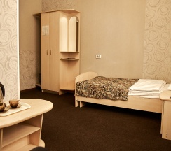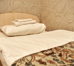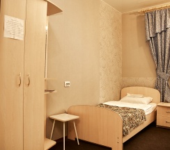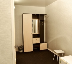 1 этаж. Однокомнатные номера площадью 16 м2. В номере две односпальные кровати-боксы (сдвигаются), 2 тумбочки, жур. столик, прихожая. В ванной комнате - душевая, банные принадлежности (мыло, шампунь, гель для душа, фен). Wi-Fi. ТВ. Чайник, чайные пары, холодильники.