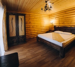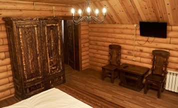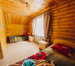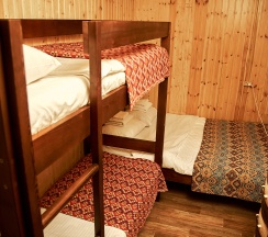 2-х спальная кровать, 2-х ярусная кровать, тумбочка. Сан.узел расположен в рядом стоящем здании.