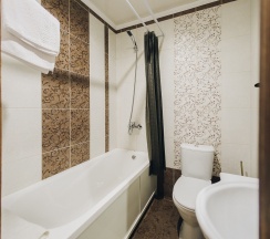 2 этаж. Однокомнатные номера площадью 16 м2. В номерах две односпальные кровати или 2-спальная. 2 тумбочки, жур. столик, чайный набор, прихожая. В ванной комнате - ванна, банные принадлежности (мыло, шампунь, гель для душа). Wi-Fi. ТВ.
