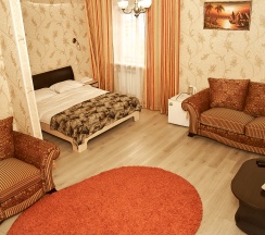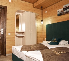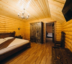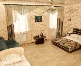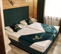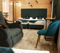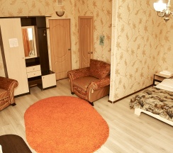 Номер двухкомнатный с отдельной кухней, санузлом и ванной (2-х спальная евро стандарт кровать, 2-х ярусная кровать, диван-кровать, 2 тумбочки, плательный шкаф, гардеробная, халаты для взрослых, тапочки, фен, туалетные принадлежности, Wi-Fi. ТВ.)