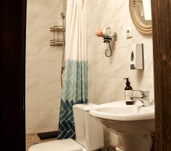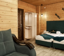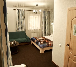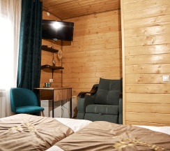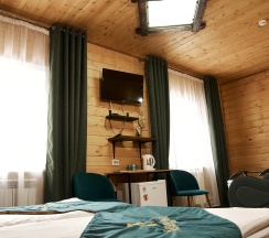 2 этаж. В номерах две односпальные кровати или 2-спальная. +доп место диван-кровать, 2 тумбочки, журнальный столик, чайный набор, прихожая. В ванной комнате - ванна, банные принадлежности (мыло, шампунь, гель для душа). Wi-Fi. ТВ.