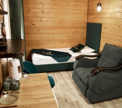 Вид на озеро Байкал. В номере 1 двуспальная кровать, 2 тумбочки. Дополнительное спальное место – диван-кровать. В ванной комнате - ванна, банные принадлежности (мыло, шампунь, гель для душа). Wi-Fi. ТВ. Чайный набор