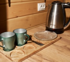 Общая кухня: кухонный гарнитур, диван, холодильник, эл. плита, 2 обеденных стола, барный стол, стулья, чайник, посуда из расчета на 16 персон, кухонные принадлежности, Wi-Fi. ТВ.