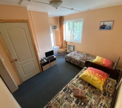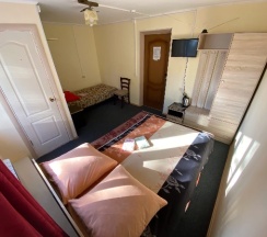 Спасибо этому заведению! Так получилось, что семьей зардержались в гостях, приехали поздно. Нас встретили, предложили чай с боовами, было очень приятно. Заселились в 4-х местную комнату на две ночи, все культурно, опрятно. Чистая глаженая постель, туалет, душевая, телик, wi-fi. Очень удобно, напротив большой магазин абсолют, можно к чаю купить и самим в номере чай попить. Внизу на первом этаже кафе, все с пылу с жару. Брали чебуреки, прямо со сковородки, прямо как дома у мамы отведал. В общем заезжайте, не пожалеете!