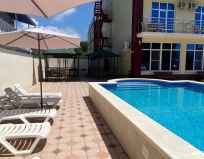 Отличный сервис, приветливый персонал и администратор. Очень чистый номер. Есть чайник,холодильник, кондиционер,в ванной фен. Во дворе бассейн. В минуте хотьбы столовая с адекватным ценником, много магазинчиков. До моря буквально 7 -10 минут неспешным шагом.