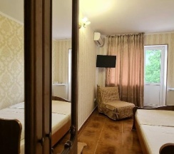 Отдыхали здесь в августе 2025г. Вообщем все неплохо, есть своя столовая, меню по заказу, номер с видом на море с балконом, в номере убираются по запросу, белье меняют через 5 дней. Море в шагововой доступности. Можно самим готовить на общей кухне. Желательно иметь свою посуду. Шумновато, но это нормально впрочем. Хорошо отдохнули.