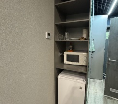 Проживали в номере 801 на 8 этаже, по самому номеру вопросов нет, все работало, номер чистый не убитый, есть конечно моменты, но не критичные (цена/качество вполне устроило). Что не понравилось: ну во первых завтрак, стоимость 500р за человека (конечно за такую сумму многого не ждешь, но…), на выбор дают три завтрака, который приносят в номер к указанному вами времени (пришлось позвонить и напомнить о себе, так как в указанное время его не принесли), только приносят его не как в нормальных обычных гостиницах на тарелках-теплый завтрак, а подобие сух пайка (фото прилагаю, да в номере есть микроволновкам чистые тарелки с кружками и приборами но когда подогреешь это уже не то, что ожидаешь от слова завтрак), это очень разочаровало, для уровня такой неплохой гостиницы это не нормально, по этому не советую брать там завтраки. Так же был момент по уборке, убрали нормально, вопросов нет, но грязные тарелки и кружки не унесли, они так и остались стоять на столе, типо сами помойте, считаю что это тоже не нормально для такой гостиницы. Что касаемо картонных стен, мы особо ни кого не слышали (но и номер у нас был боковой, то есть соседи только с одной стороны, которых не было), холодильник шумноват, но мы его просто выключали на ночь и всё. На этаже кстати стоит гладильная доска с утюгом, но почему-то нет розетки чтобы его включить, мы конечно не растерялись и перенесли их к себе в номер, а после глажки вернули на место(возможно это так и работает, но нам про это не сказали), но все равно странно. Хотелось бы посоветовать гостинице исправить вышеуказанные моменты и добавить халаты в номера. В остальном все нормально. Будем ли еще останавливаться в этой гостинице, думаю да.