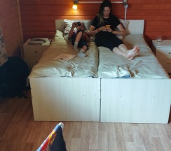 Очень понравилось у вас отдыхать. Были в сентябре, номера благоустроенные, тёплые, чистые. У нас был номер без холодильника, поэтому пользовались общим на кухне. В кухне стоят столы со стульями, приятная атмосфера. Есть холодильники, печки, вся необходимая посуда и микроволновка.