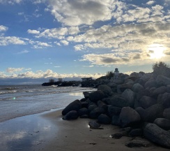 Здесь можно гулять часами, наслаждаясь шумом волн, криками чаек и свежим воздухом, наполненным ароматом сосен и озерной воды.