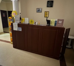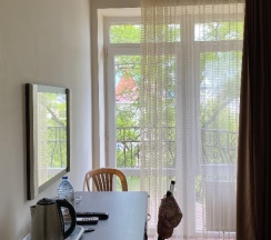 Хорошее расположение, хорошие номера. Персонал отзывчивый 👍 , особенно хозяйка. в номере есть телевизор, холодильник, чайник и даже сейф, зеркала, большой стол.