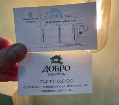 Вчера вечером решили остановиться в Хабаровске и уже очень поздно позвонили, чтобы забронировать два номера, хозяйка отеля очень приветливо ответила несмотря на поздний час и помогла с размещением