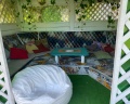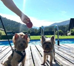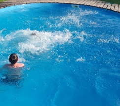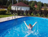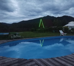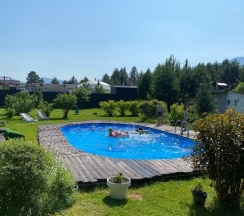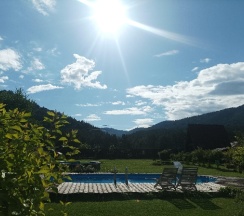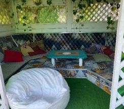 Отдыхали здесь дважды в доме с сеновалом, поместились компанией из 9 человек, включая детей ( с собой был двухспальный надувной матрац, отлично вошёл на втором этаже). Шикарное место, сосновый бор, свежий воздух, большая территория. Есть живой уголок с кроликами, петухами, даже павлинами. Два бассейна, взрослый и детский, чистые! Раньше на территории было кафе, теперь там стоит теннисный стол, есть настольные игры, можно весело скоротать вечер. В доме всё аккуратно, свежее постельное, полотенца, посуда. Перед домом с сеновалом площадка на улице, абсолютно изолированная от других домов, для приготовления шашлыка и уличных посиделок отлично! Но и у других домов хорошее расположение, ни кто не мешает друг другу. Для семейного отдыха однозначно советую!
