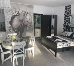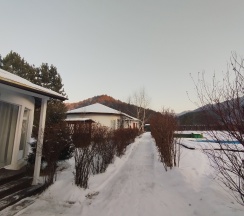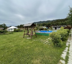 Случайно нашли рекламу места на просторах интернета и не пожалели. Отдыхали семьёй с 8 по 10 марта. Тот случай, когда фото на сайте = реальность. Дом был "Изумрудный". Отличное состояние. Тёплый! Чистое белье. Имеется вся кухонная утварь. Отдельно у домика мангальная зона. На территории для детей есть детская площадка и мини зоопарк (качеля, домик, песочница). Удалённое место от трассы. Лес. Горы. Тишина. Прекрасный отзывчивый персонал. Огромное спасибо !