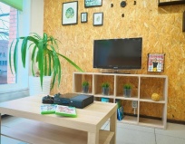 Сам хостел стандартный, есть абсолютно всё необходимое, ничего лишнего. Кухня со всем необходимым: холодильник, плита, чайник, микроволновка, фильтр, посуда. Есть стиральная и сушильная машины, гладильная доска, утюг, сушилки. Чисто, тепло, светло, цены адекватные. Интернет, естественно, телевизор в холле и парковка имеется.