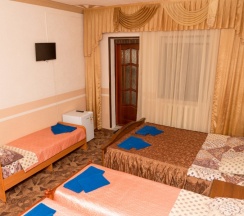 Трехместный номер класса "Стандарт" со всеми удобствами, в номере: холодильник, телевизор, кондиционер и полноценный с/у ( душ и туалет ) - все в номере.