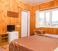 Четырехместный номер "Эконом" класса, в номере: холодильник, телевизор, кондиционер. Душ и туалет для номеров эконом класса расположен на этаже на два номера.