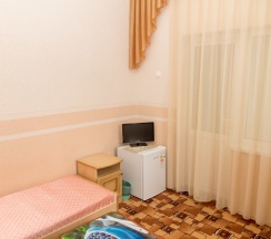 Одноместный номер "Эконом" класса, в номере: холодильник, телевизор, вентилятор. Душ и туалет для номеров эконом класса расположен на этаже на три номера.