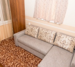 Семейный двухкомнатный четырехместный номер класса "Стандарт" со всеми удобствами, в номере: холодильник, телевизор, кондиционер и полноценный с/у ( душ и туалет ) - все в номере.