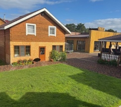 Отличное место для отдыха с семьёй и детьми. Новые здания, современный дизайн, чистые уютные номера, тв, интернет и удобные кровати и подушки. Вежливый персонал. Для детей есть детские комнаты, детская площадка и клетка с кроликами. Также классный бассейн, баня и сауна. Был момент, что остановилась в отеле шумная компания, которая начала на территории напиваться, орать матом в микрофон и включили громко музыку, но администрация отеля их разогнала т.к. данное место для тихого, семейного, спокойного отдыха с детьми, а не для пьяных громких-вечеринок. Поэтому выражаем благодарность и обязательно вернемся снова.