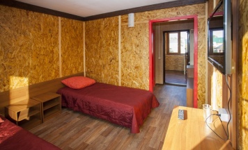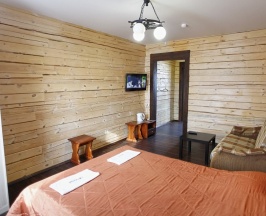 Номер Комфорт Double (Дабл). Полный пансион. В номере имеется семейная кровать размером 160х200см. Телевизор 32 дюйма. Дык тумбы. Диван. Журнальный стол. Чайник со стаканами. Гардероб. Санузел с душевой кабиной. Цена указана с учетом питания.