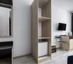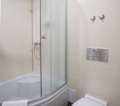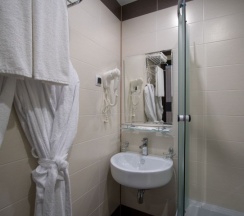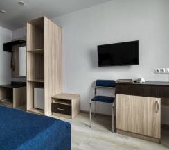 Стандартный номер, площадью 20 м. кв., в номере односпальная кровать (90 см) и комфортное кресло-кровать (90 см) рассчитан на 1 или 2 гостей. Номер оснащен всем необходимым для комфортного проживания. К вашим услугам: бесплатный wi-fi, телевизор с плоским экраном, телефон, мини-холодильник, электрочайник и чайный набор. В ванной комнате для вас набор белоснежных полотенец, набор средств индивидуальной гигиены, фен, тапочки.