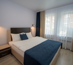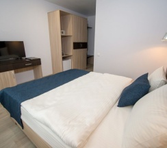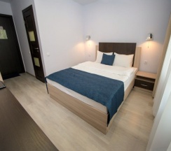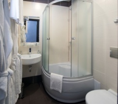 Номер с двуспальной кроватью (140*200) и кресло-кроватью (90*200). Сан узел с душевой кабиной.