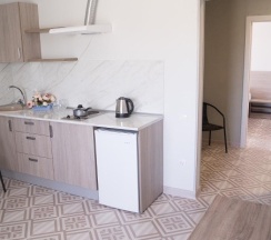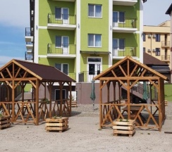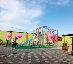 Апартаменты с кухнями, много номеров двухкомнатные (до 5 человек). Бесплатная парковка,детский бассейн,беседки и мангал,много велосипедов,игрушек для детей