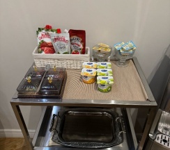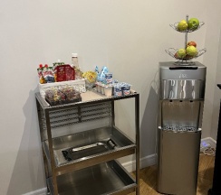 С учётом концепции гостиницы и доступной зоной для приёма пищи, можно было бы поставить маленький холодильник и там хранить молоко.