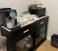 Чтобы выпить капучино вне завтрака необходимо попросить специальный контейнер для кофемашины и молоко, т.к его убирают.