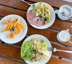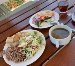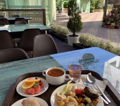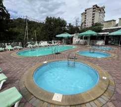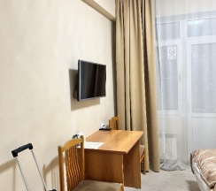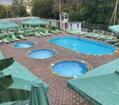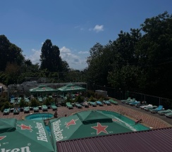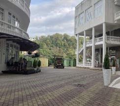 Минусы: отель неудачно расположен, на возвышенности, рядом ничего нет (Придется ездить на такси/брать каршеринг, заказывать доставку еды или много ходить). Игротека работает с перерывами, настольных игр можно считать, что нет (у всех неполная комплектация), дартс сломан, очень странная подборка книг в читальном зале, грязные, липкие столы в беседках, TV показывает 20 аналоговых каналов, Wi-fi слабый, временами вовсе не работает. Бытовая комната далеко (1 корпус, 2 этаж). Полотенца меняют раз в три дня, сушилок на всех не хватает, ковролин в номерах замусоленный, невозможно понять убирают или нет. Теннис/бильярд платный. Трансфер не ходит после 6 вечера.