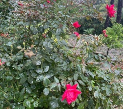 Много растений, цветов на территории.