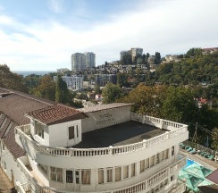 Расположение отличное, очень вежливый ресепшн, вид с балкона супер, если поселят в номер с видом на море, очень чисто в санузле! Заселили на час раньше. Есть мыло, шампунь, холодильник, фен, чайник в номере и кулер на этаже. Проживать хорошо,если не в сезон,т.к.далековато до моря. Но из отеля ходят бесплатные автобусы до пляжа аж 10 раз в день. Даже в октябре! Минусов достаточно много. В основном корпусе все уже пожившее, надо обновлять до состояния улучшенных номеров, а такие в отеле тоже есть. На нашем 5 этаже красили веранду и, конечно, запах краски шел в номер. Там же работали какие-то очень неприятные типы, которые нам нагрубили, когда мы пришли посмотреть откуда несет краской. Не работает бильярд, хоть он и платный, т.к. сломан единственный кий😳. Игротека тоже нуждается в обновлении. Бассейн для такого большого отеля странный, одна глубина, как в советских фонтанах, в общем только для детей. Поэтому только дети и плещутся там. Взрослым не поплавать. Самый большой минус вой сирен по ночам, во время если есть опасность беспилотной атаки. Это просто атас. Нам выпало две таких ночки. С полуночи до 6 утра примерно, сирену включают каждые 30-40 минут😱 И стремно, и не уснешь, естественно, т.к. рядом жилой район и сирены, соответственно со всех сторон. Плюс, то, что сам отель находится на возвышенности, а по рупору объявляют "покиньте верхние этажи". При этом в самом отеле ничего не предпринимают, и слава богу. Не хотелось бы ночь еще в подвале проводить, как в отелях Сириуса...В аэропорту, имейте ввиду, все рейсы отменяют, или переносят. Он будет закрыт, пока не объявят " Отбой беспилотной опасности". В общем, пока все это не закончится, я бы больше в Сочи не ездила.