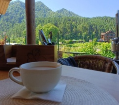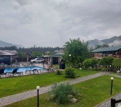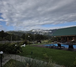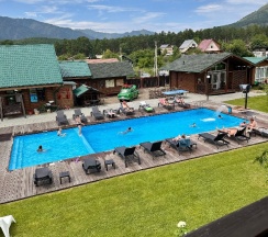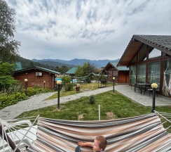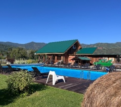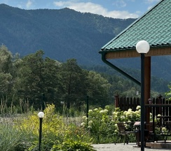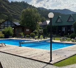 Приятное место, все плюсы уже написаны в предыдущих отзывах(хорошее расположение, уютные номера, есть все необходимое, чистый бассейн, бесплатные мангальные зоны и баня) .Сняла звезду за нюансы :1)заявлено, что бассейн подогреваемый, но по факту вода холодная (тёплая была только в детской зоне, где глубина 0,6м).2)Парковка есть, но для тех, кто живёт в стандартных номерах, она находится за территорией, никак не огорожена, не охраняется (у проживающих в домиках вроде бы есть отдельная на территории). 3)Вай фай вроде бы и есть, но очень слабый сигнал, почти нет. 4)Завтраки вкусные, нужно накануне выбирать по 2 блюда на человека(каша, яйца, творог, блинчики, оладьи, нарезки) . Но шведского стола нет (есть только хлеб, мед, кофе(невкусный), морс, вода. 5)Т. К вокруг село, то полночи лаяли собаки, потом полночи орали петухи.. В целом эти нюансы отдых не испортили, Алтай прекрасен)