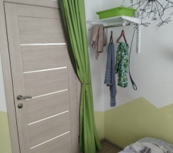 В общем номере шторки, это плюс к личному пространству. Кухня, туалет, душ чистые. Дискомфорта не возникло.