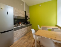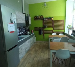 На кухне можно спокойно поесть даже вечером при фактически полном заселении. Есть посуда вся нужная, микроволновка, чайник. Минусом я бы назвала не самую лучшую посуду из-за не очень умных постояльцев и порой отсутствие вилок/ложек опять же потому что тащат в комнаты и с собой. Так же часто забит холодильник, но можно найти местечко, иногда админы проводят ревизию.