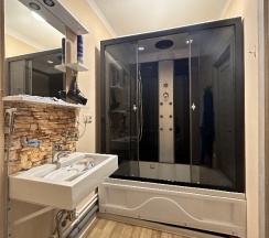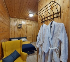 Номер со всеми удобствами, телевизор, холодильник, чайник, посуда, полотенца, халаты, в общем всё, что необходимо.