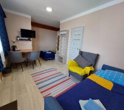 Нам очень понравилось, хорошее место расположение, тихо уютно, хозяева очень хорошие добрые люди, все подскажут и расскажут куда сходить, помогут с экскурсиями, кафе очень вкусно готовят и цены нормальные, номер брали 2 комнаты, уютный очень, вообщем остались довольны, рекомендую