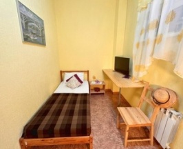 Номер оснащен: односпальная кровать, кондиционер, телевизор, мини-холодильник, прикроватная тумбочка, комод, небольшие окна, душ и туалет.